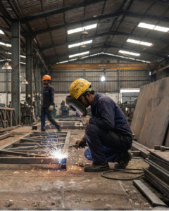 We execute fabrication for industrial sheds, commercial structures, and related civil works.